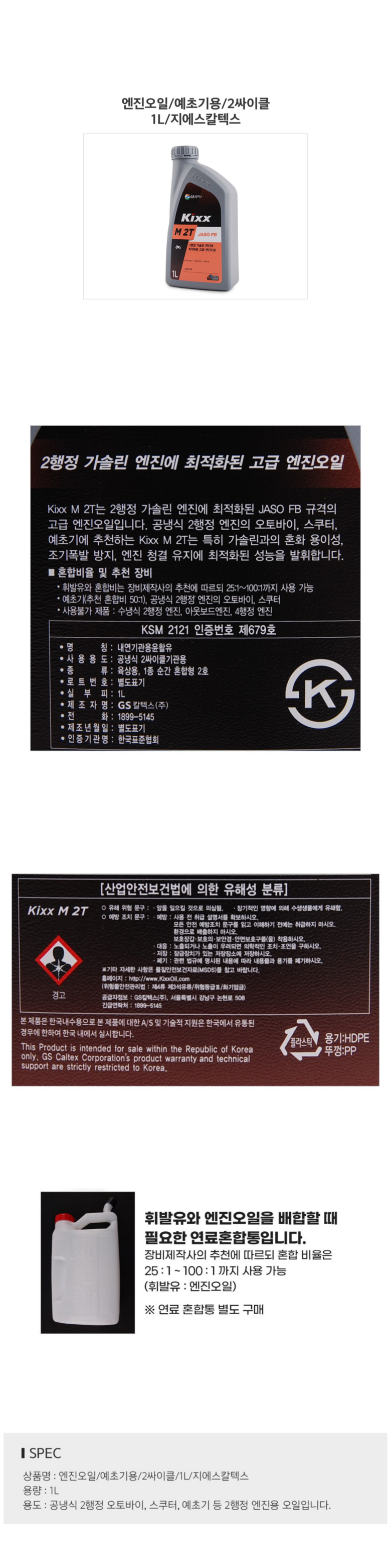 엔진오일/예초기용/2싸이클/1L/지에스칼텍스
