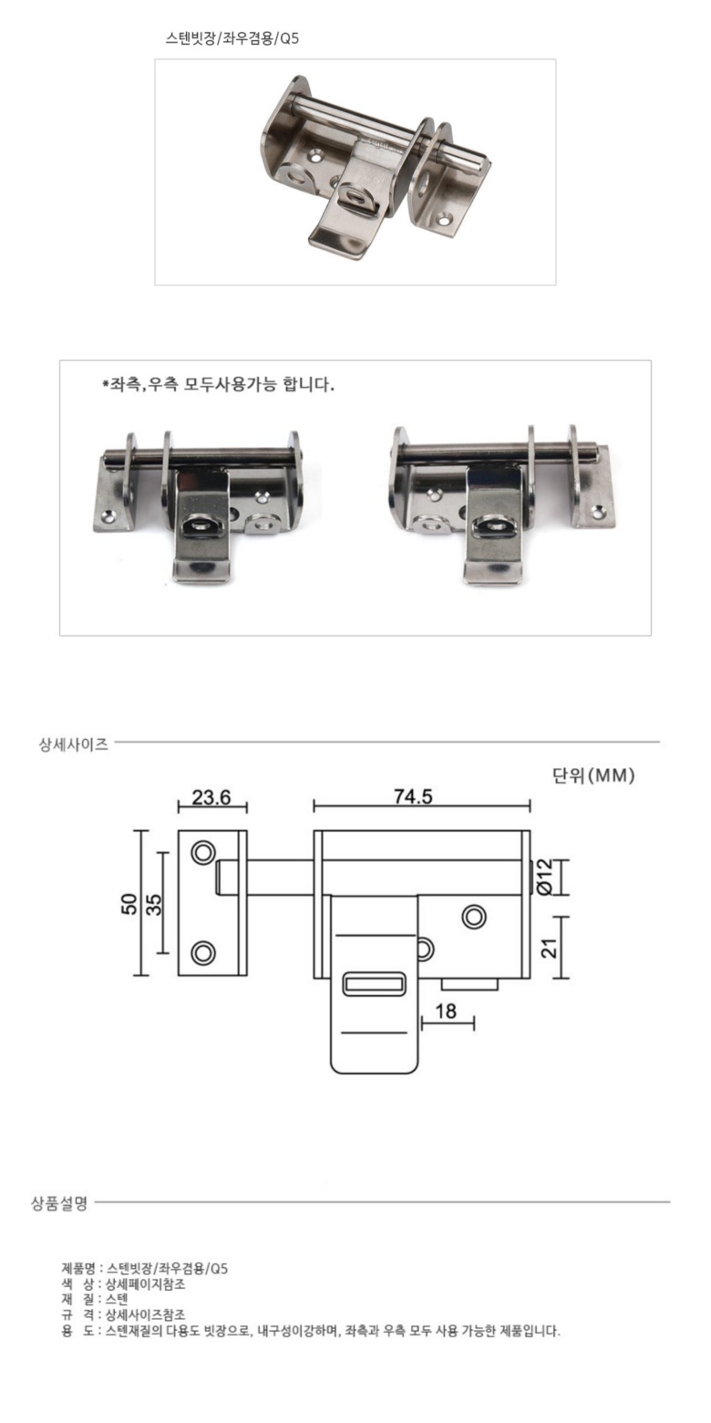 스텐빗장/좌우겸용/Q5/CB