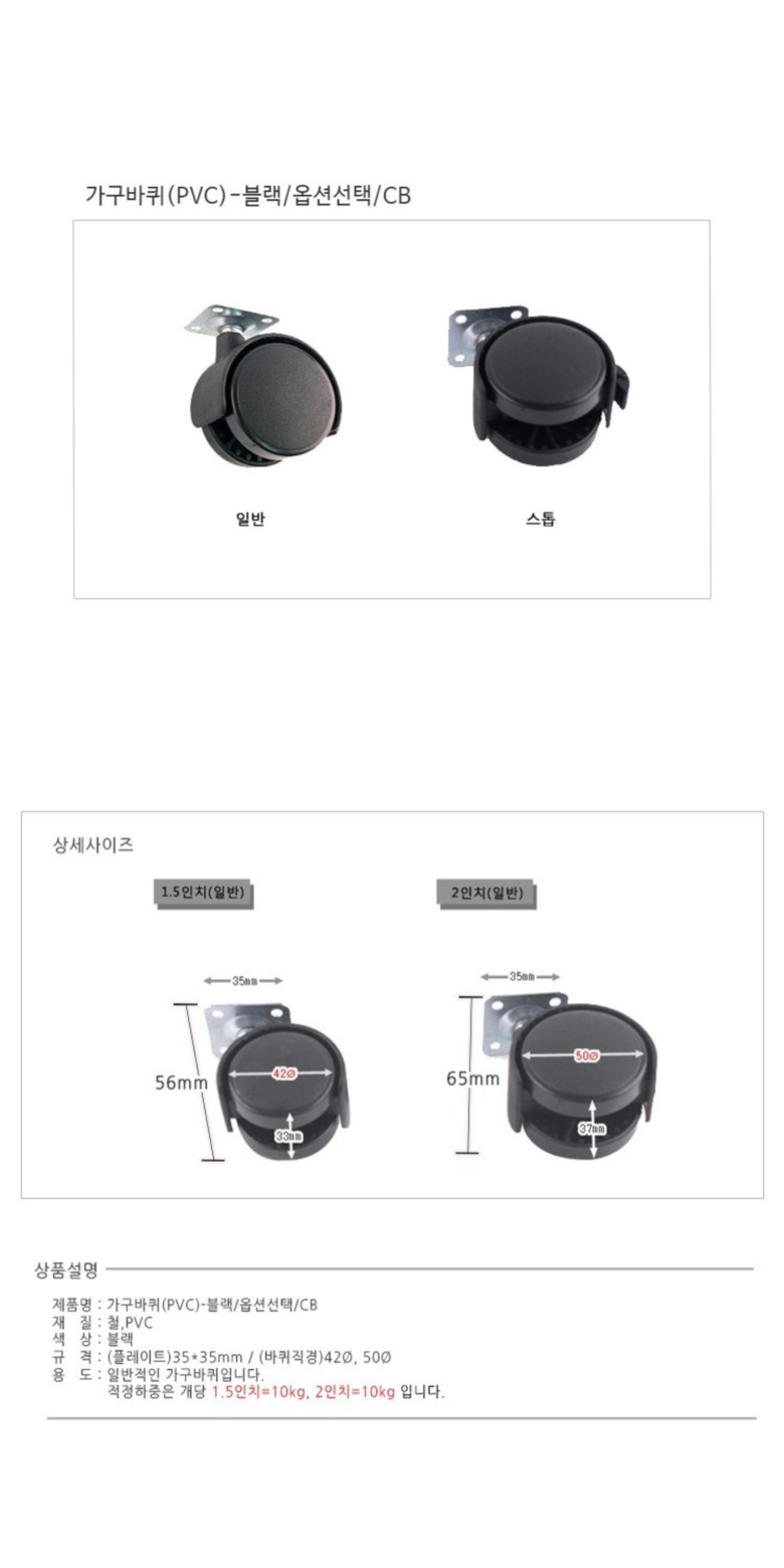 가구바퀴(PVC)-블랙/옵션선택/CB