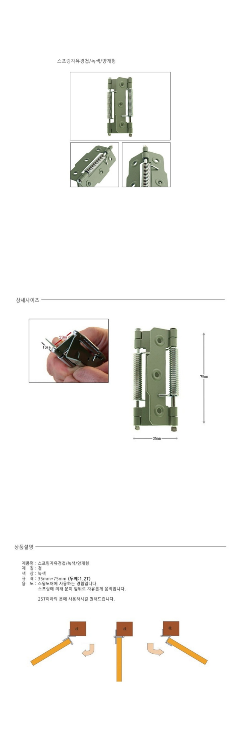 스프링자유경첩/녹색/양개형