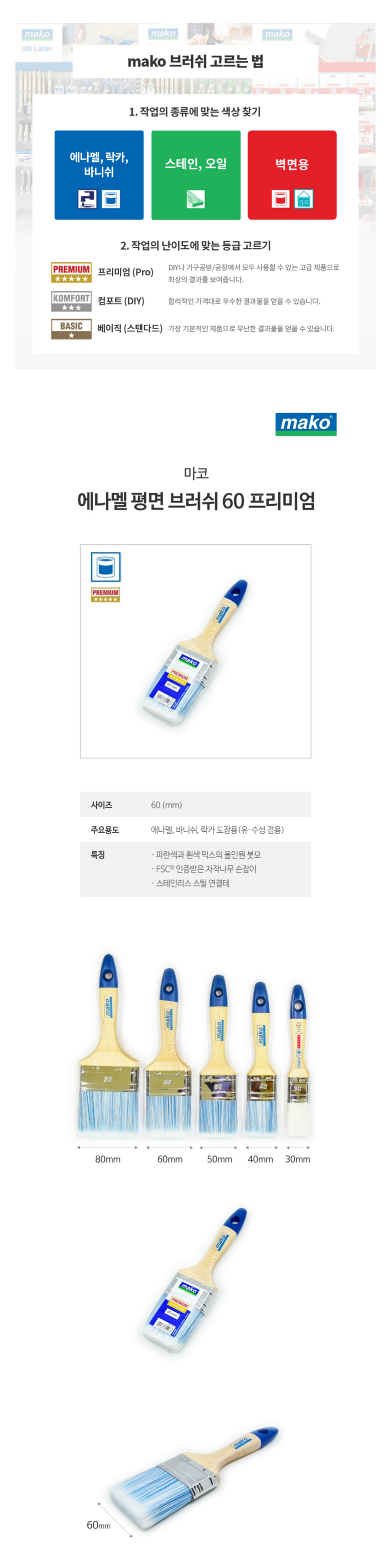3552 60 마코 에나멜 평면 브러쉬 프리미엄 (60mm)