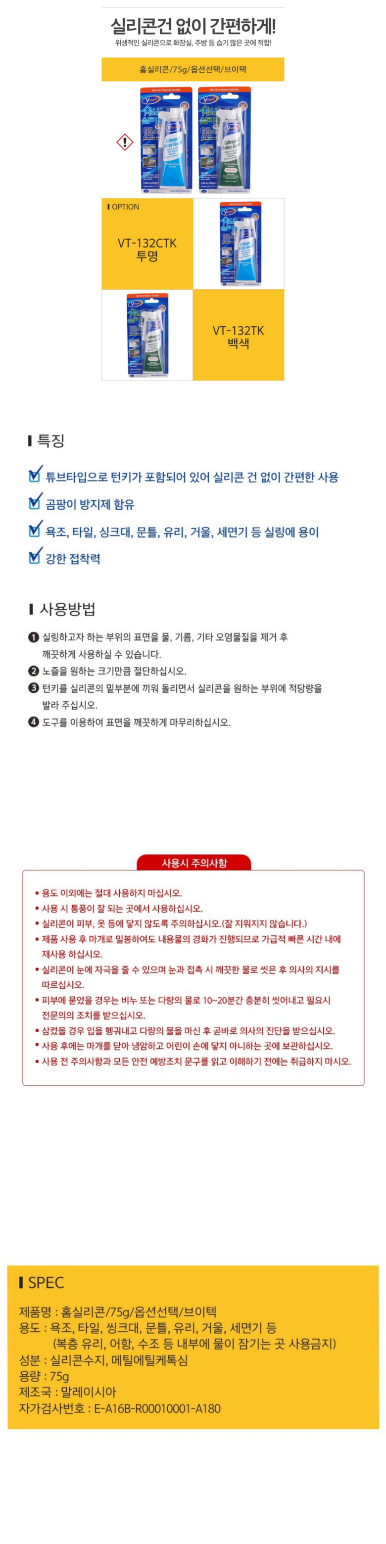 홈실리콘/75g/옵션선택/브이텍
