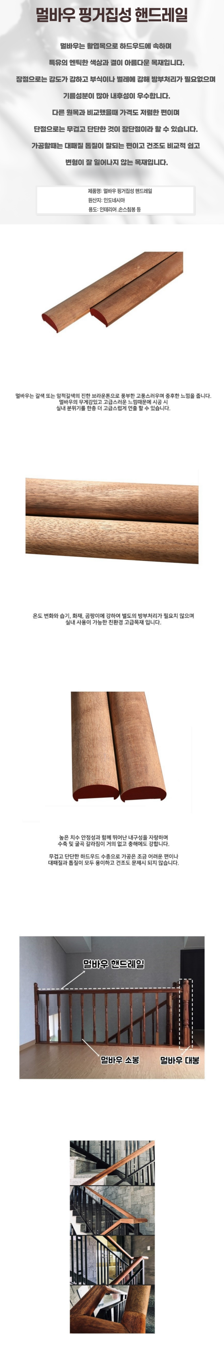 멀바우 집성 핸드레일 두께 40mmx폭 70mmx길이 3600mm