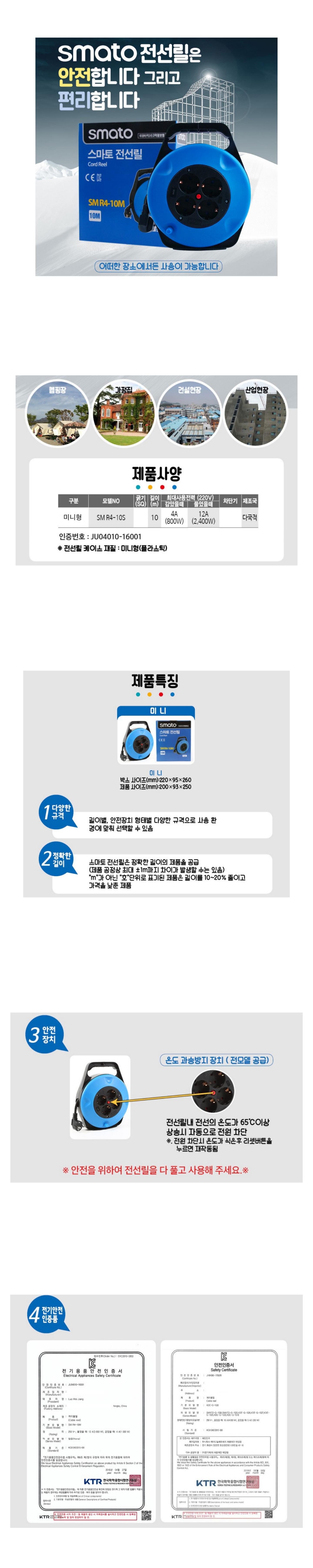 전선릴/캠핑용/미니/1.5X10M/4구/SMR4-10M/스마토