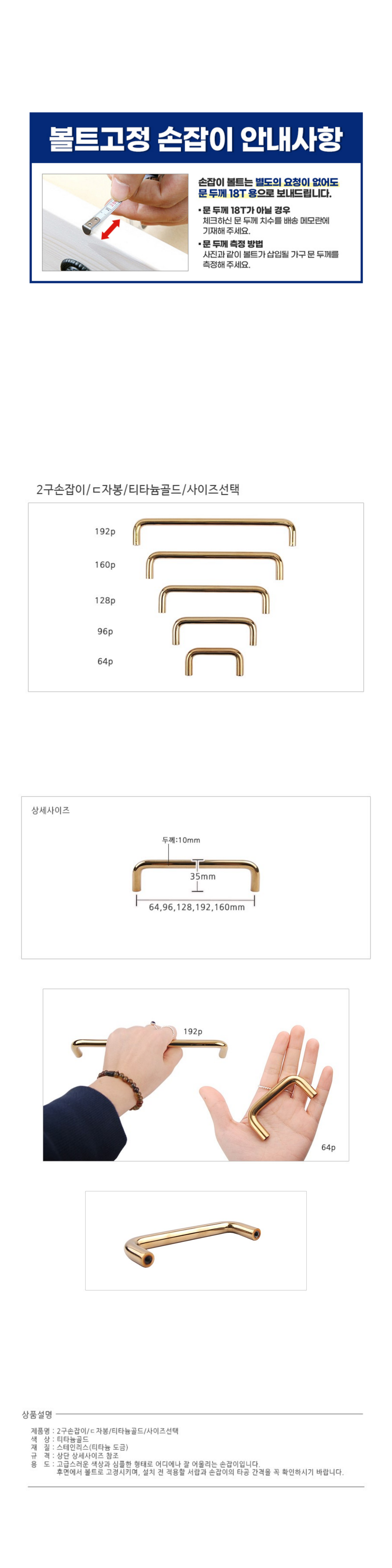 2구손잡이/ㄷ자봉/티타늄골드/사이즈선택