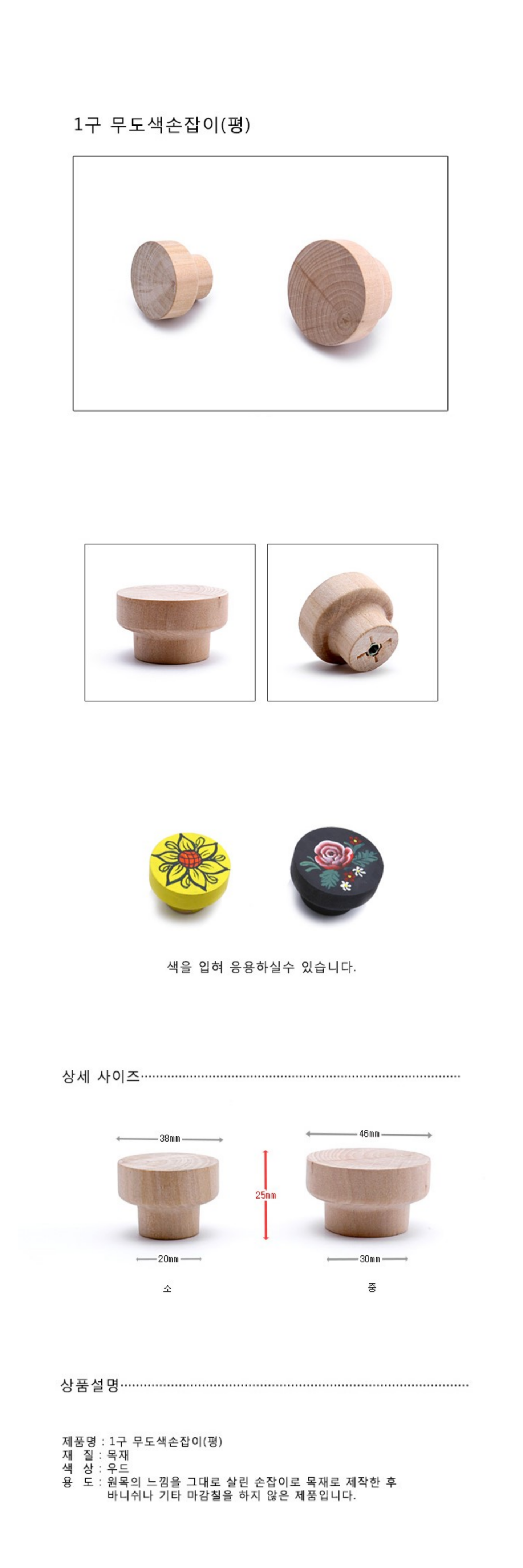 1구손잡이/원형무도색(평)/가구손잡이/규격선택