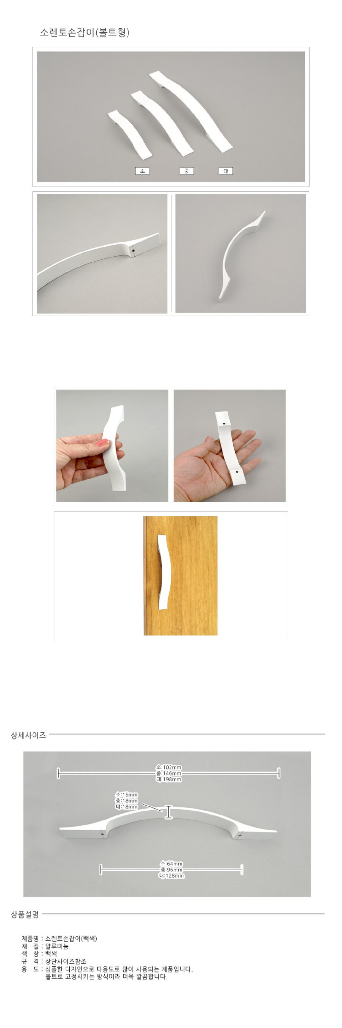 소렌토손잡이(볼트형)/백색/사이즈선택