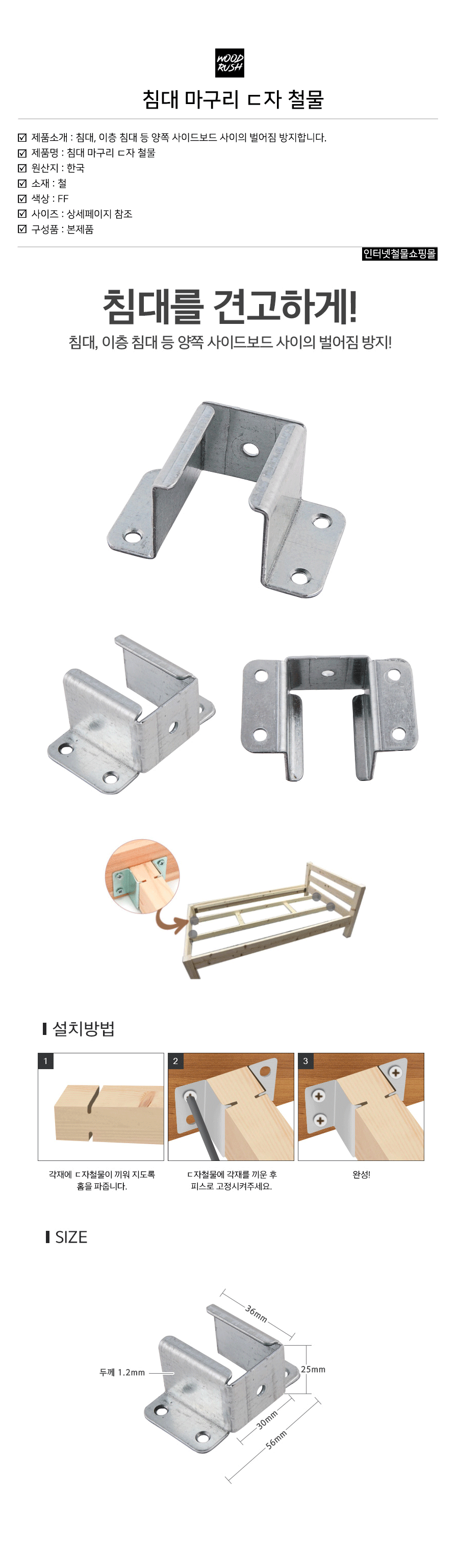 침대 마구리 ㄷ자 철물 10개set